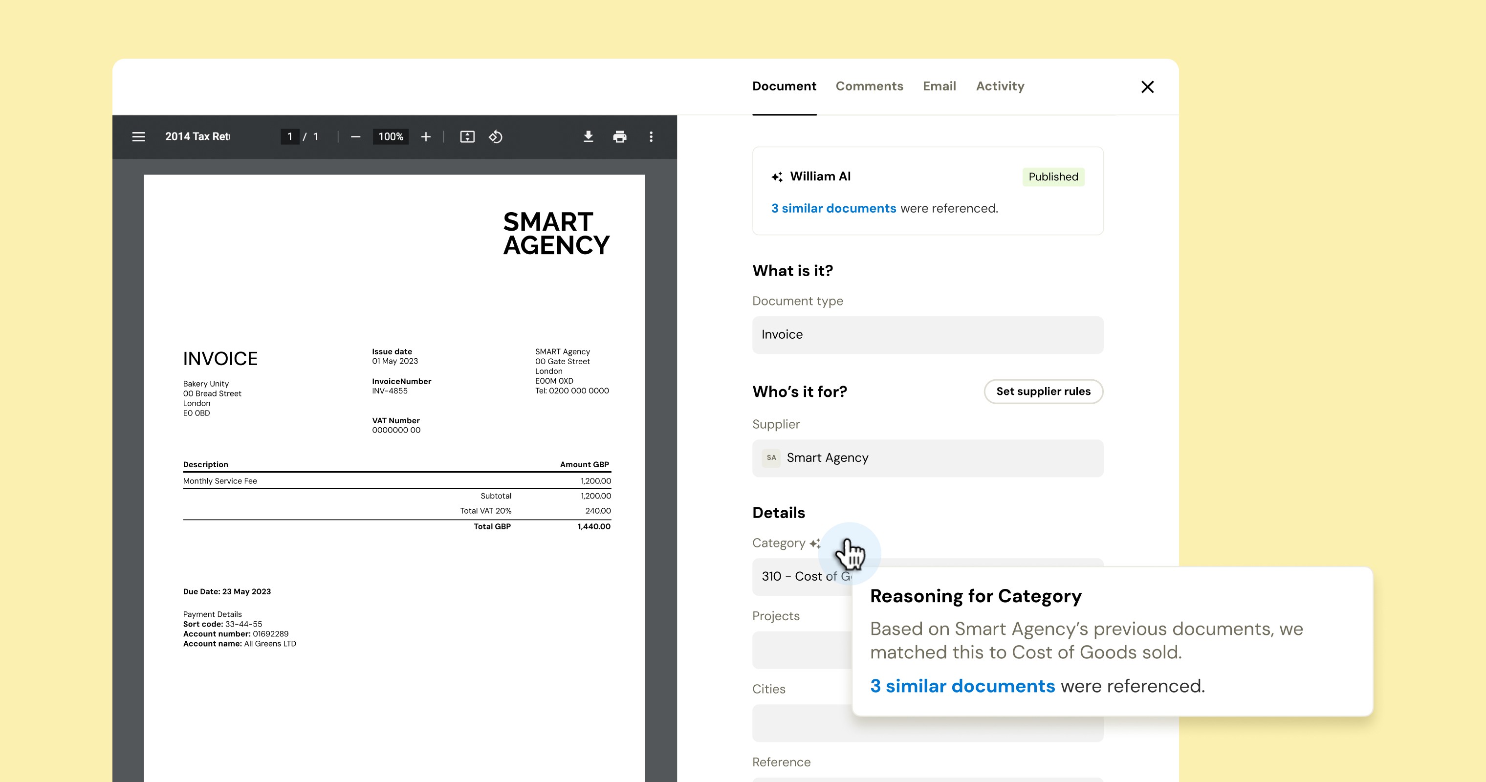 But, we know that trusting AI with client finances is a big ask. It’s why we’ve built and trained William to show its reasoning, and exercise caution.
