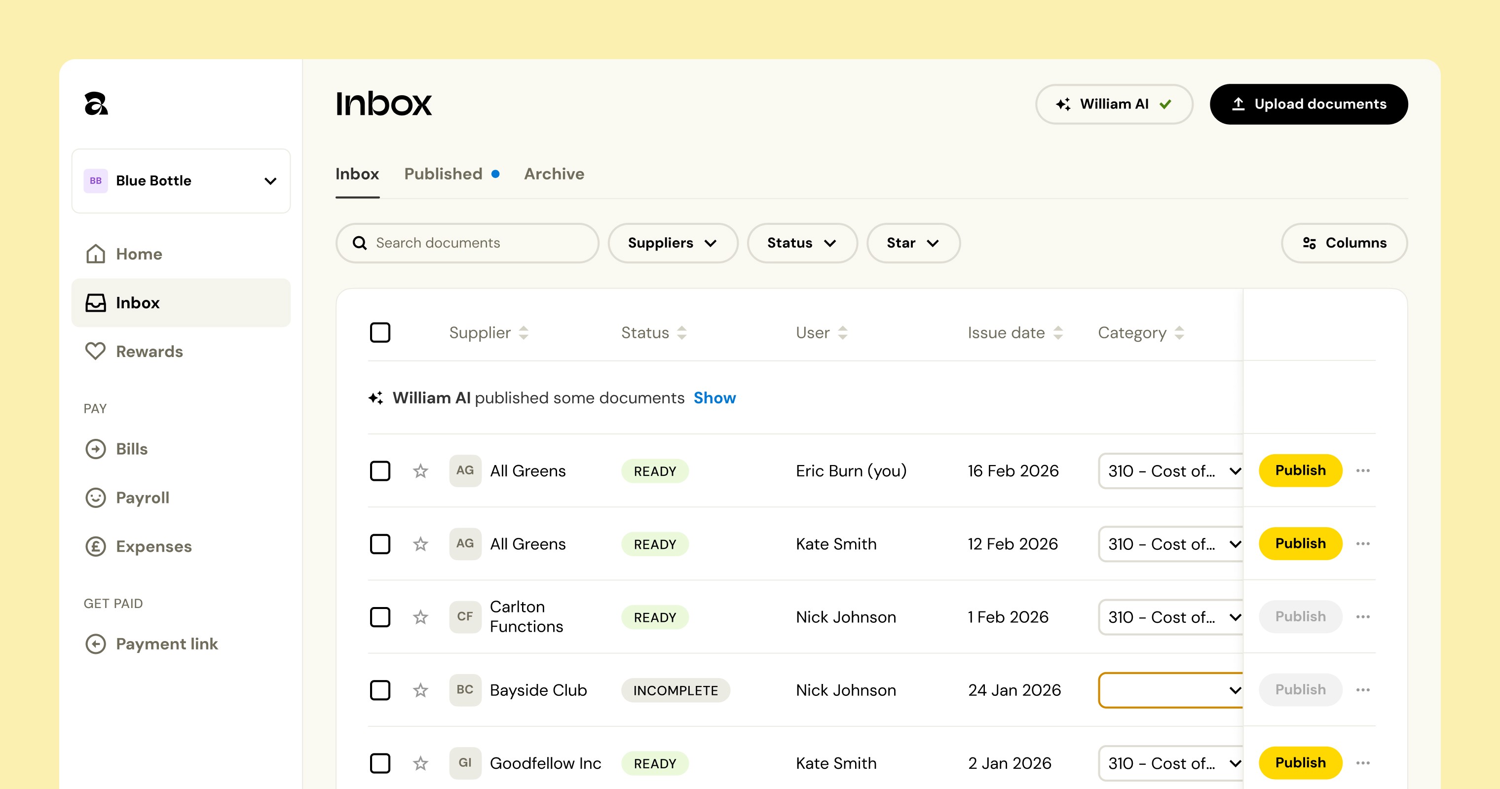 William is more than a feature. This is a shift in how bookkeeping workflows operate. Apron already minimises document chasing by bringing capture and payments together.